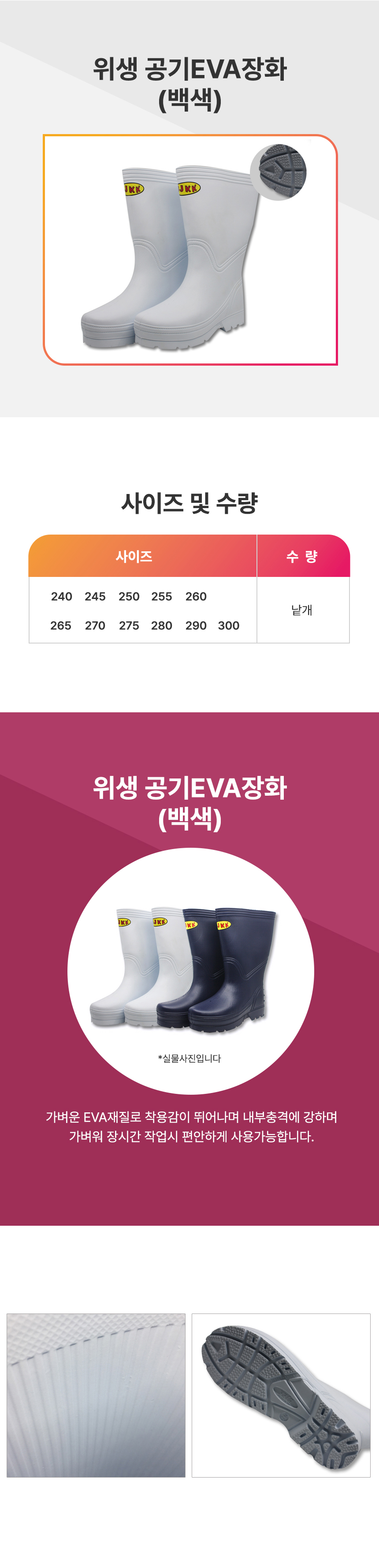 위생 공기 EVA 가벼운장화 (백색) - 사이즈 꼭 기재부탁드립니다.