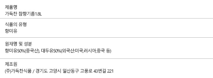 가득찬)참향기름1.8L 1개 참기름 향미유 이미지