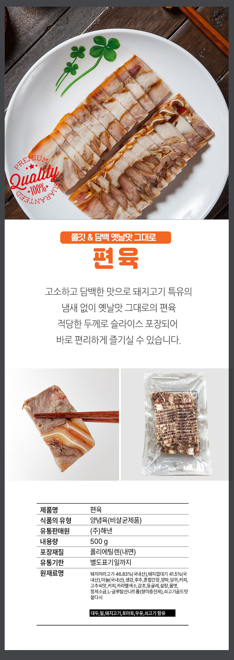 간단설명 : 특유한 돼지 냄새가 없고 쫄깃한 식감이 일품인 편육입니다