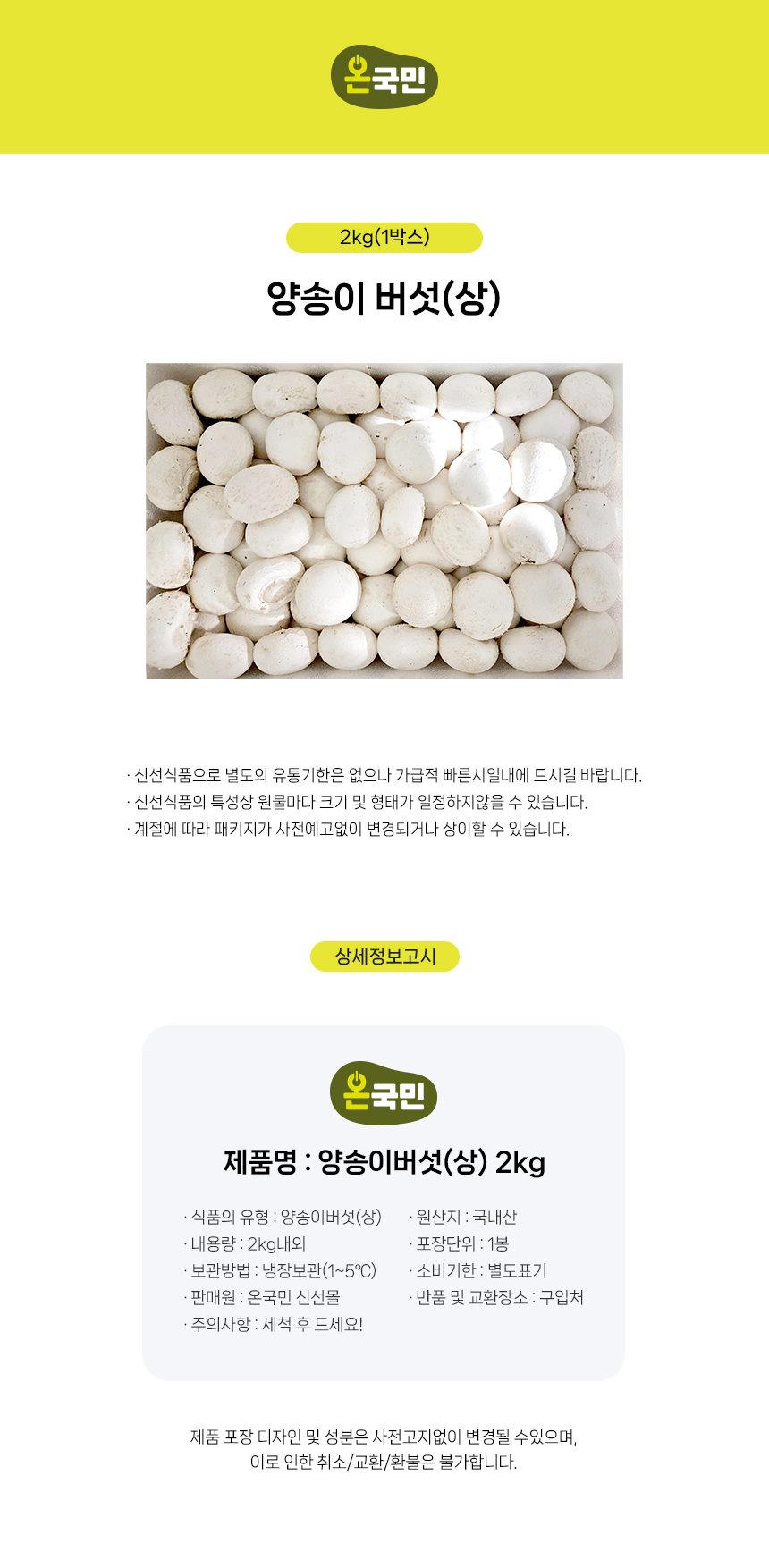 양송이 버섯(상) 2kg