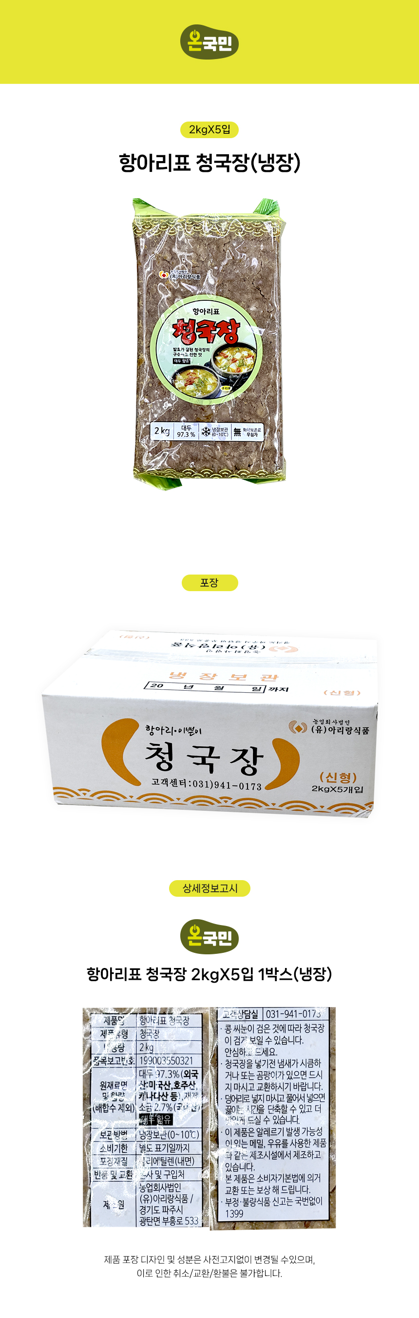 아리랑식품 항아리표 청국장 2kgx5입 1박스