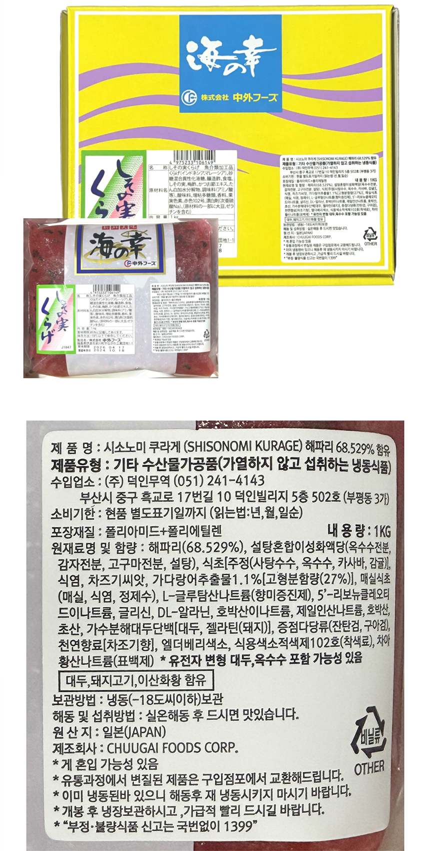 시소노미쿠라게 1kg 냉동 일본산 해파리 초절임 차조기