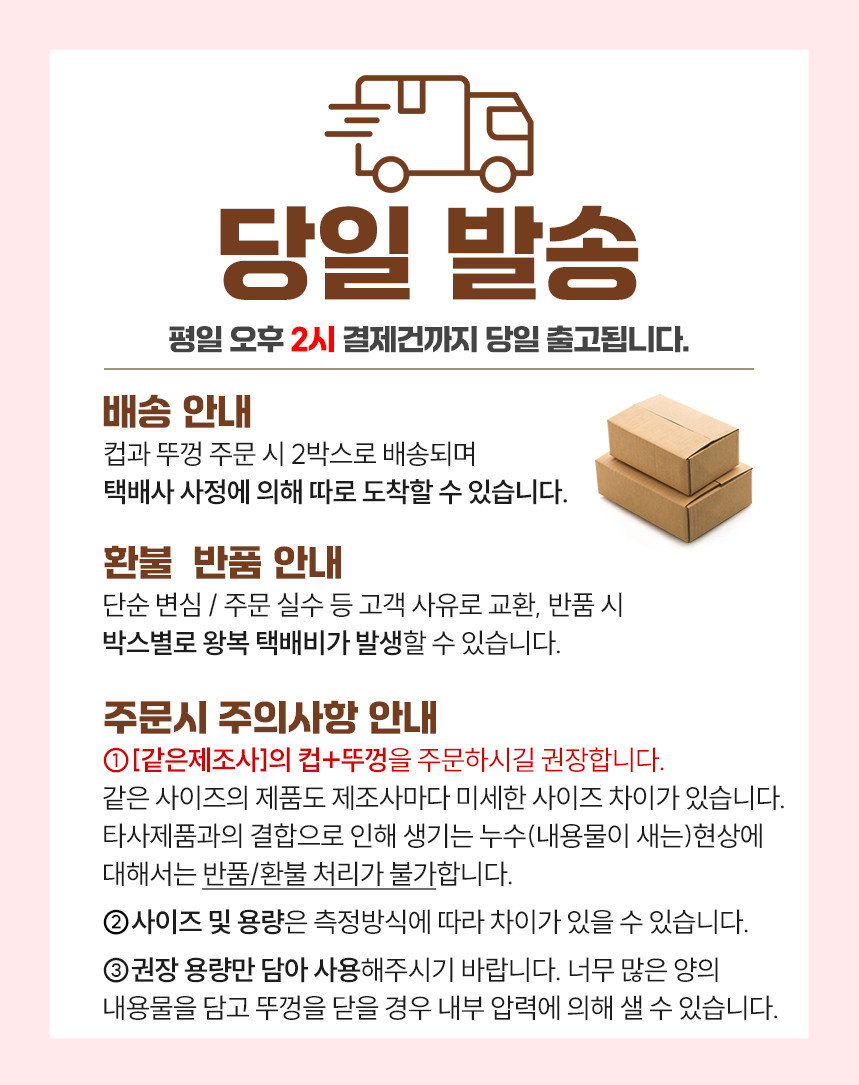 평일 오후 2시 이전 주문 확정 시 당일 발송입니다.