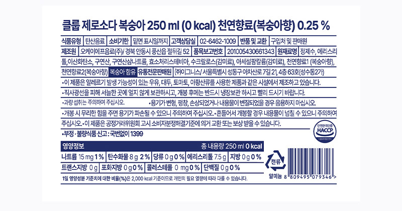 클룹 제로소다 복숭아 250ml 24입