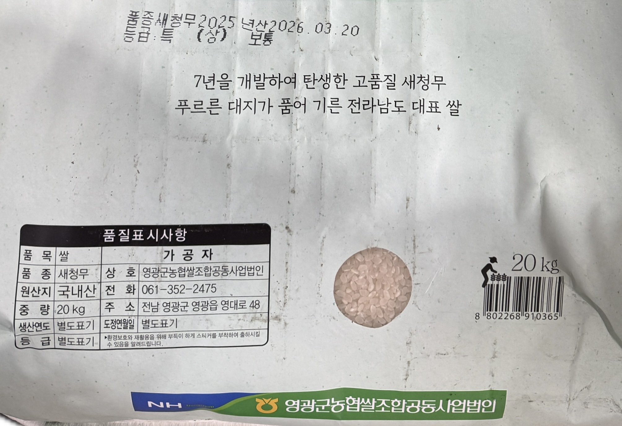 ❤️초특가❤️[25년 햅쌀] 영광농협 새청무 쌀 20kg [상등급,단일품종]