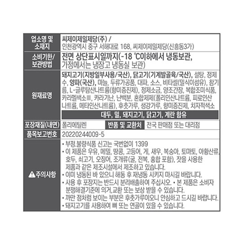 원재료명 및 함량