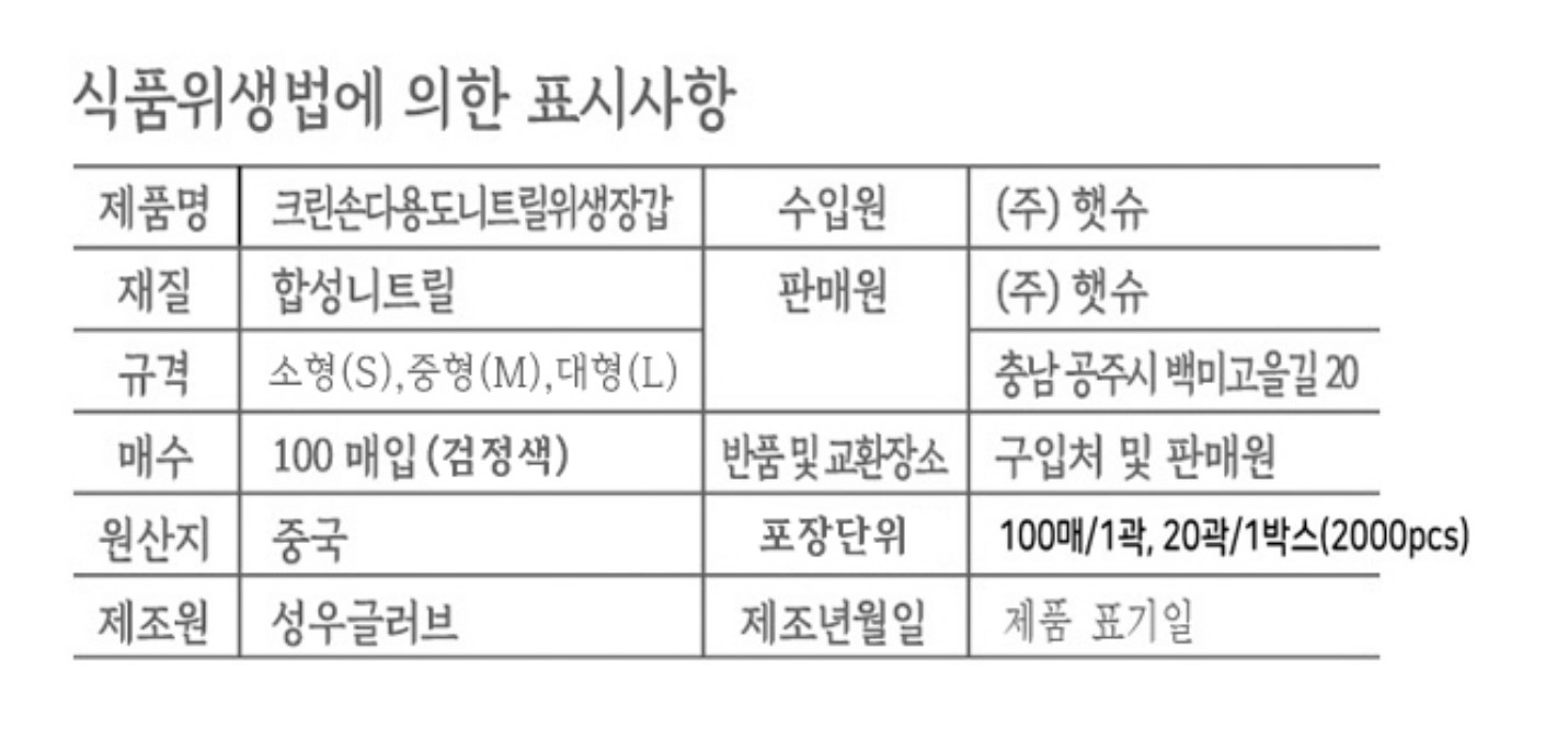 크린손 니트릴장갑(유통용 검정색_소_100입 EA)