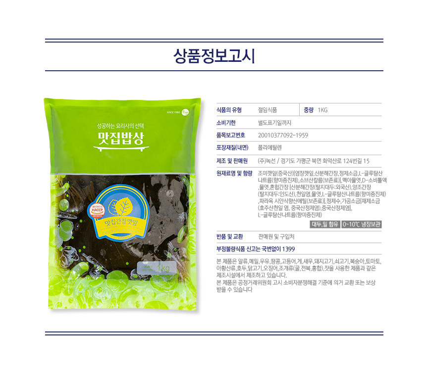 맛집밥상의 간장깻잎은 HACCP 인증을 받은 공장에서 제조하기 때문에 안심하고 드셔도 괜찮습니다