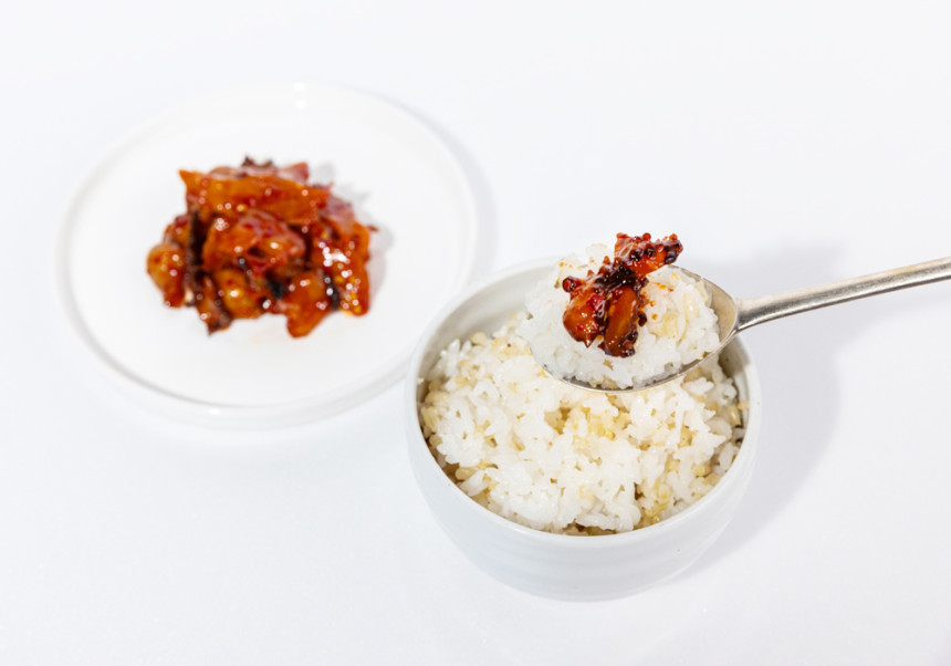 직접 개발한 매콤달콤한 양념 레시피로 졸여 재료 본연의 맛이 깊숙이 베여있어 감칠맛이 납니다. 거기에 오징어 자체의 쫄깃한 식감에 입맛이 살아나는 밥도둑입니다