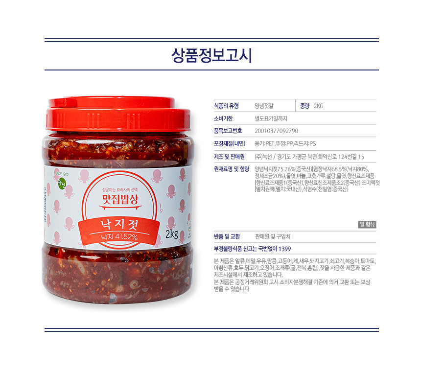 맛집밥상의 낙지젓은 HACCP 인증을 받은 공장에서 제조하기 때문에 안심하고 드셔도 괜찮습니다