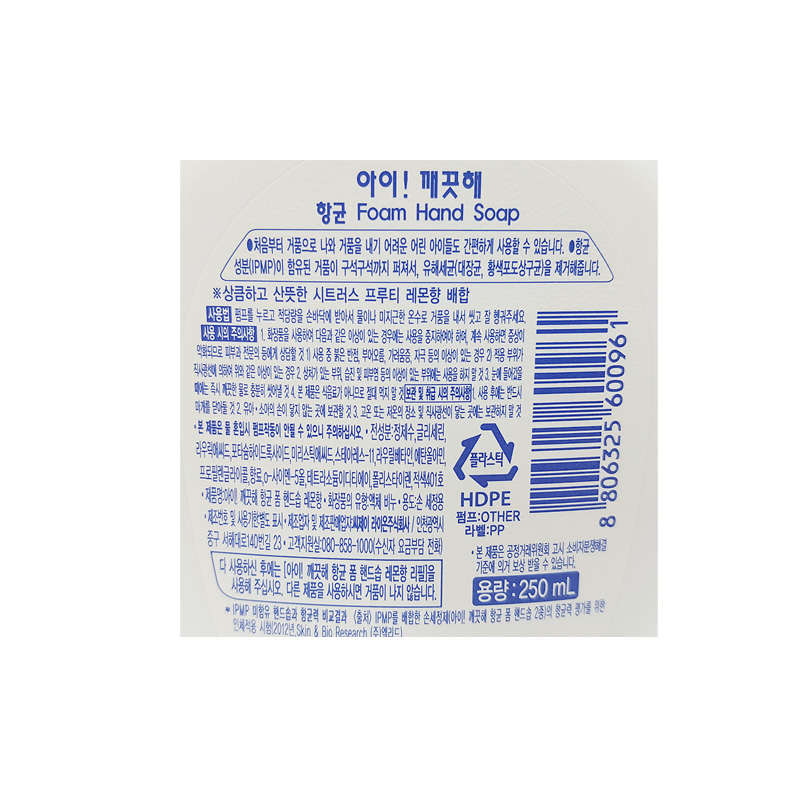 아이깨끗해 손세정제(거품형_레몬향_250ml EA) 이미지