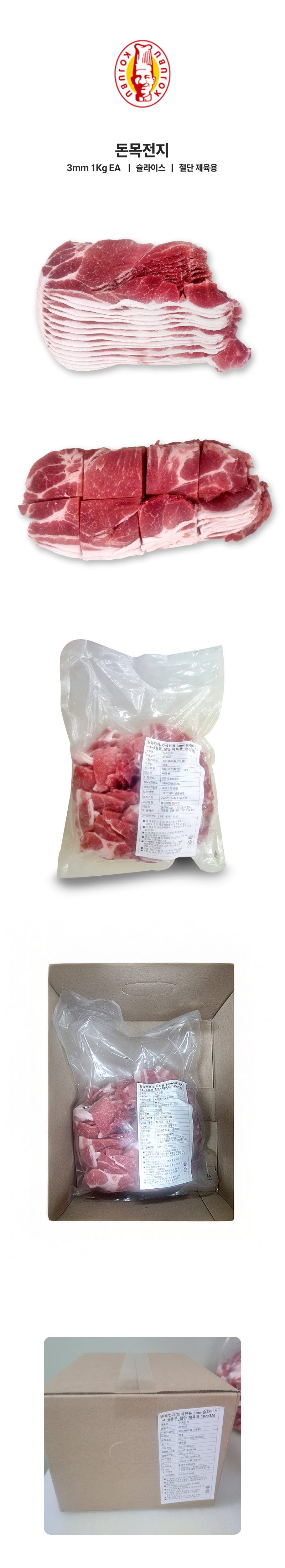♥정육특가♥ 돈목전지(3mm 4~6등분 1kg/EA) 제육용