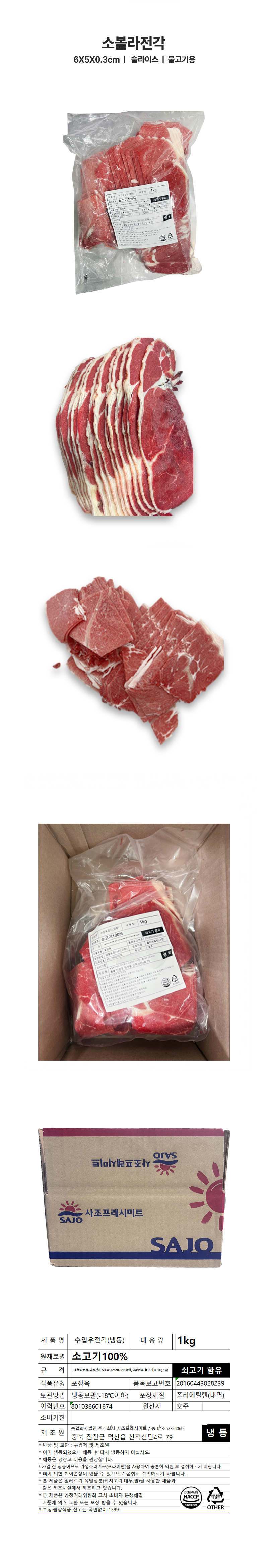 ♥정육특가♥ 소볼라전각(S등급 6*5*0.3cm 1kg/EA) 불고기용