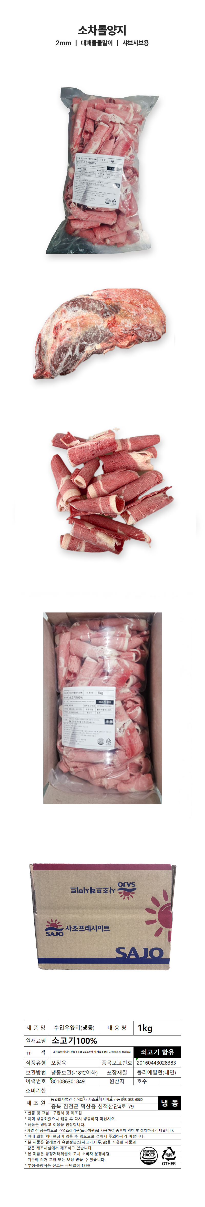 ♥정육특가♥ 소차돌양지(S등급 등급2mm두께 1kg/EA) 샤브샤브용