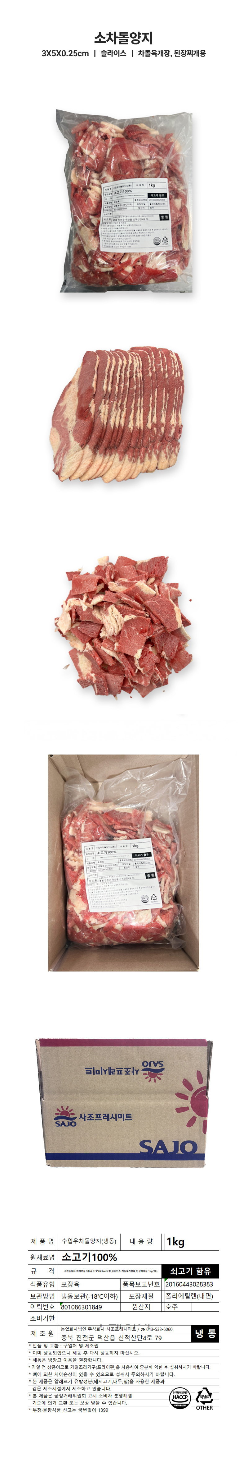 ♥정육특가♥ 소차돌양지(S등급 3*5*0.25cm 1kg/EA) 된장찌개용