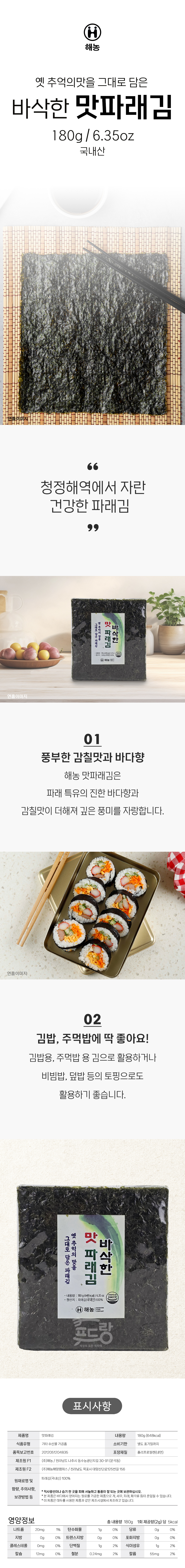 ![맛파래김[해농,무조미,바삭한파래김,100매]180G 이미지](https://content.foodspring.co.kr/vendor/859/images/710_0258787671_r.jpg?f=webp&s=876x876&t=inside)