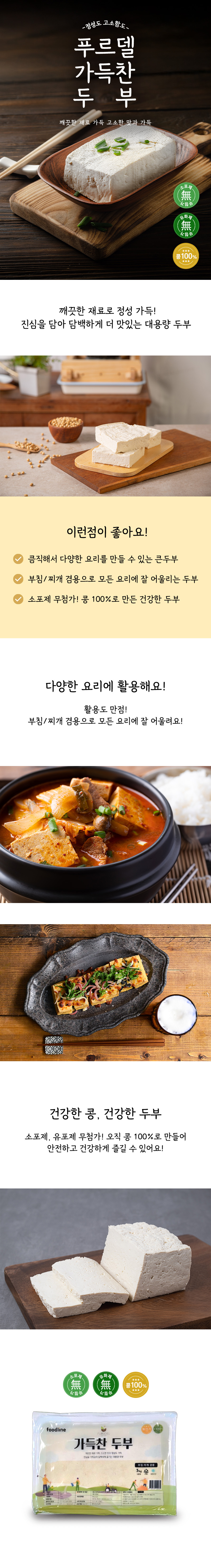 ★초특가★ 푸르델 판두부 3Kg★대두100%★ 무소포제, 무유화제 부침, 찌개겸용 3Kg, 팩두부