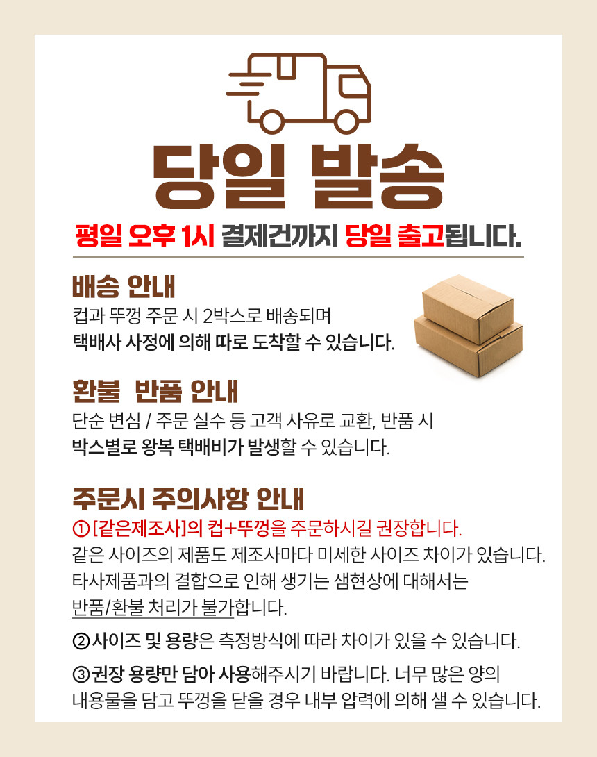 평일 오후 2시 이전 주문 확정 시 당일 발송입니다.