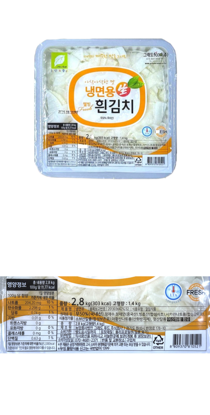 웰빙 냉면김치 2.8kg 냉면무 업소용 냉면용 흰김치 이미지
