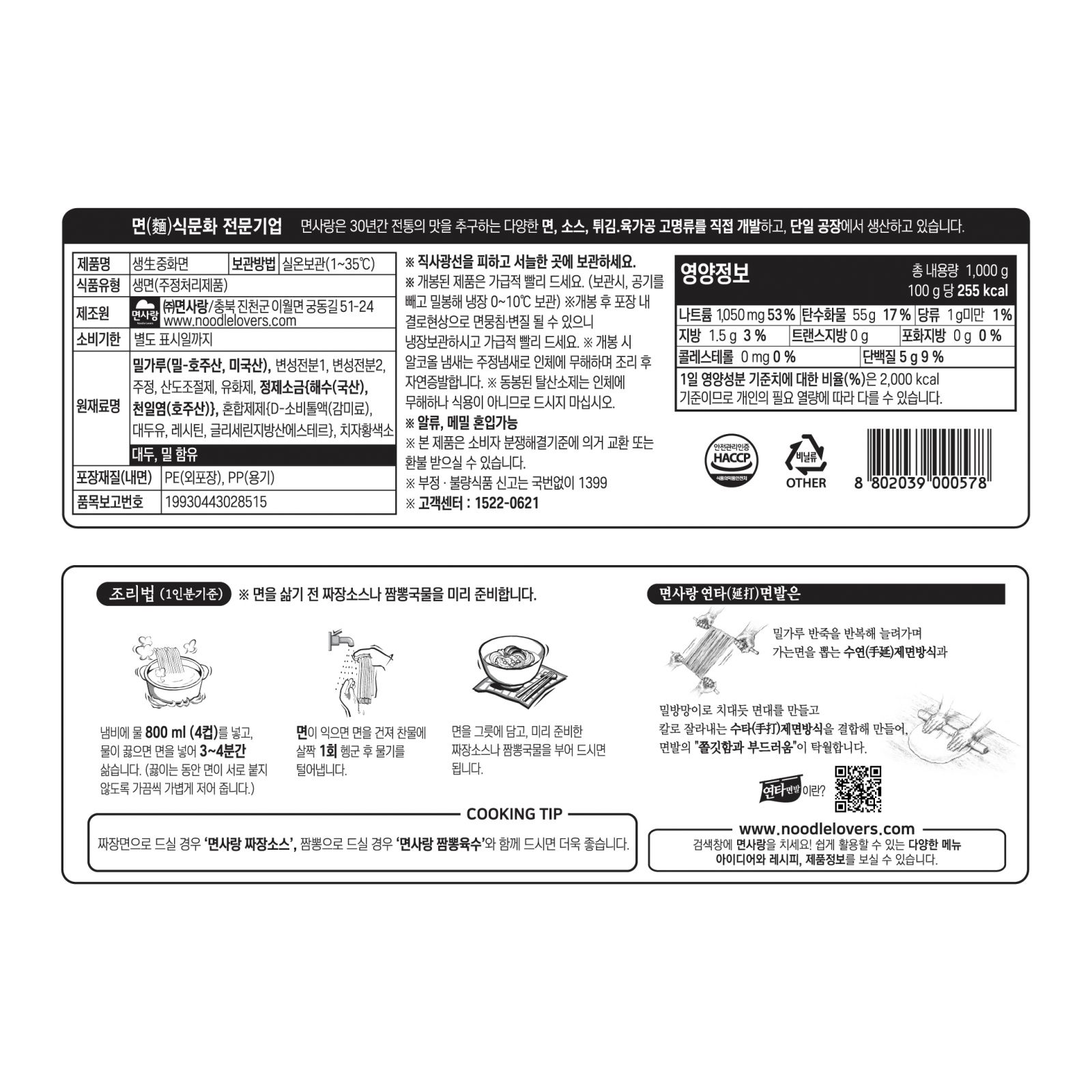 (실온)생중화면(각형) 1kg(200g*5)_면사랑