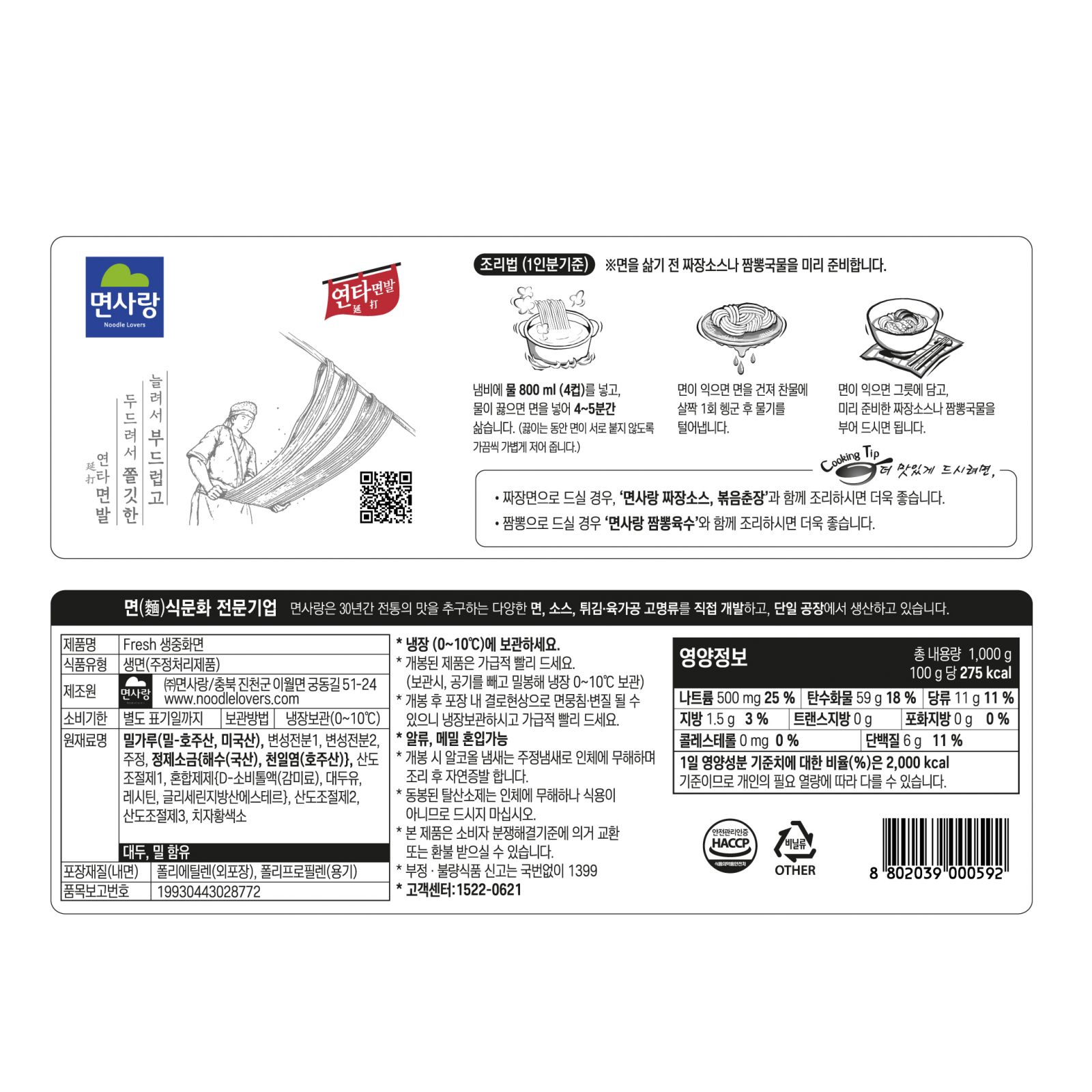 (냉장)생중화면(각형) 1kg(167g*6)_면사랑