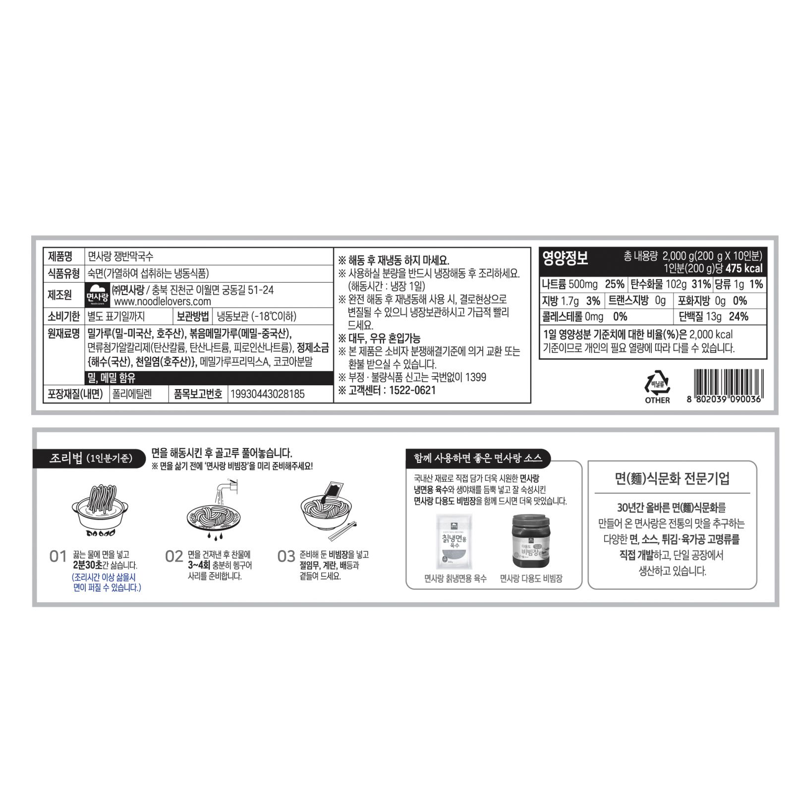 (냉동)쟁반막국수 2kg_면사랑