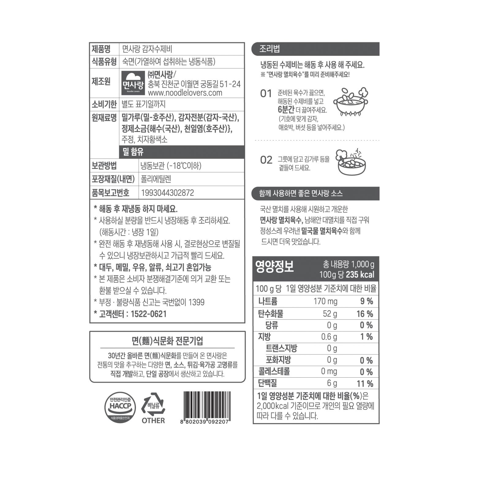 (냉동)감자수제비 1kg_면사랑