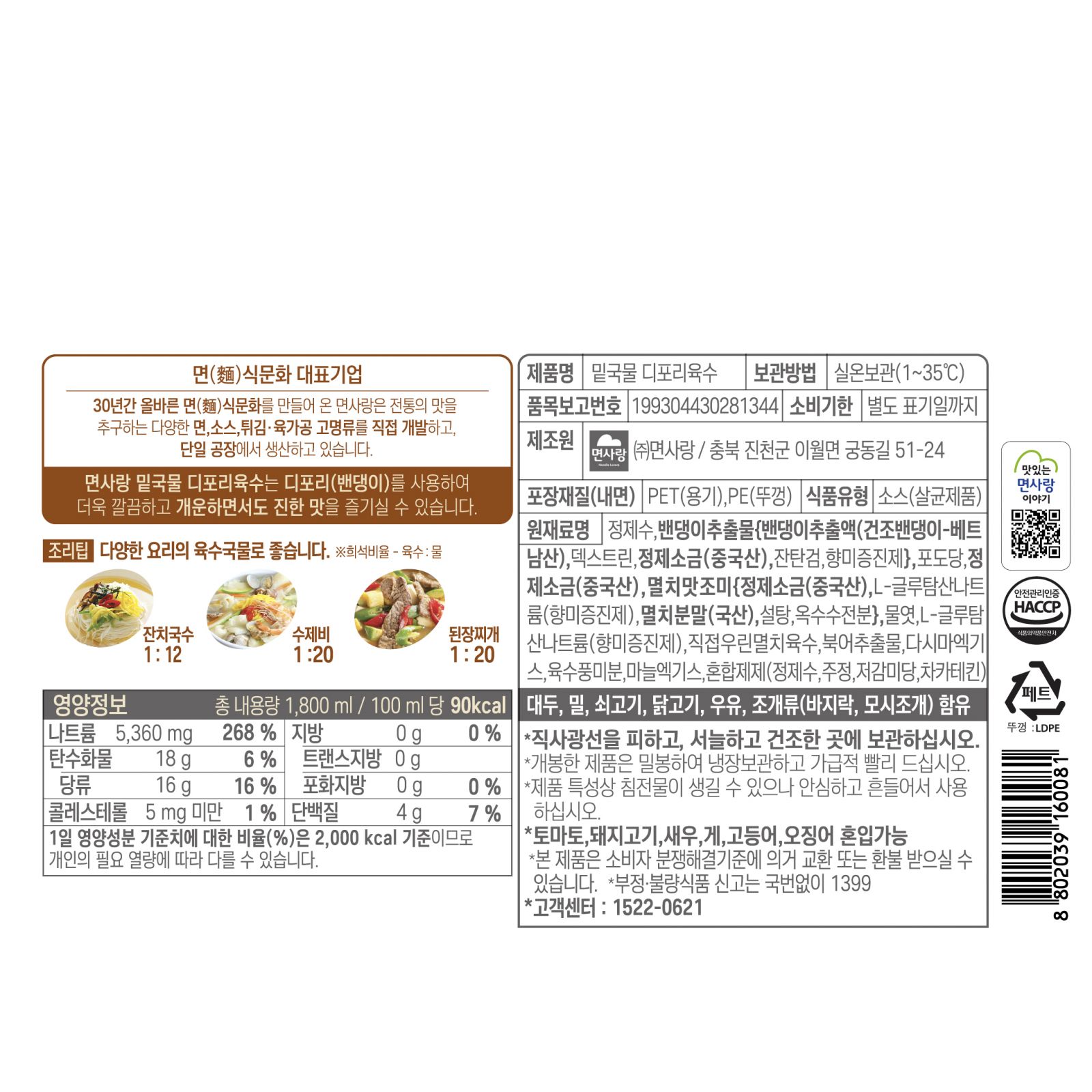 (실온)밑국물 디포리육수 1.8L_면사랑