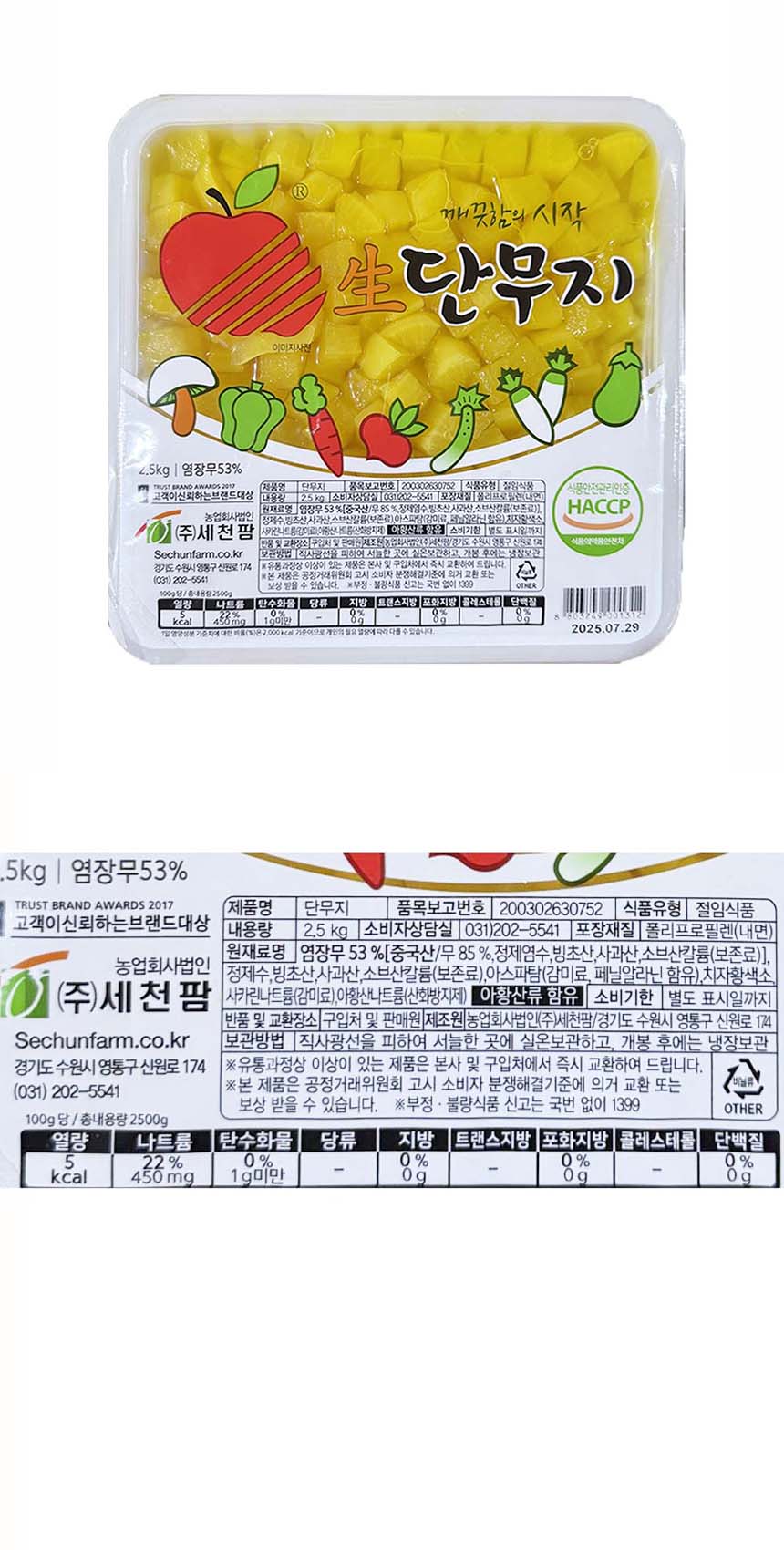 세천팜 깍둑 단무지 2.5kg 업소용 반찬 깍뚝단무지