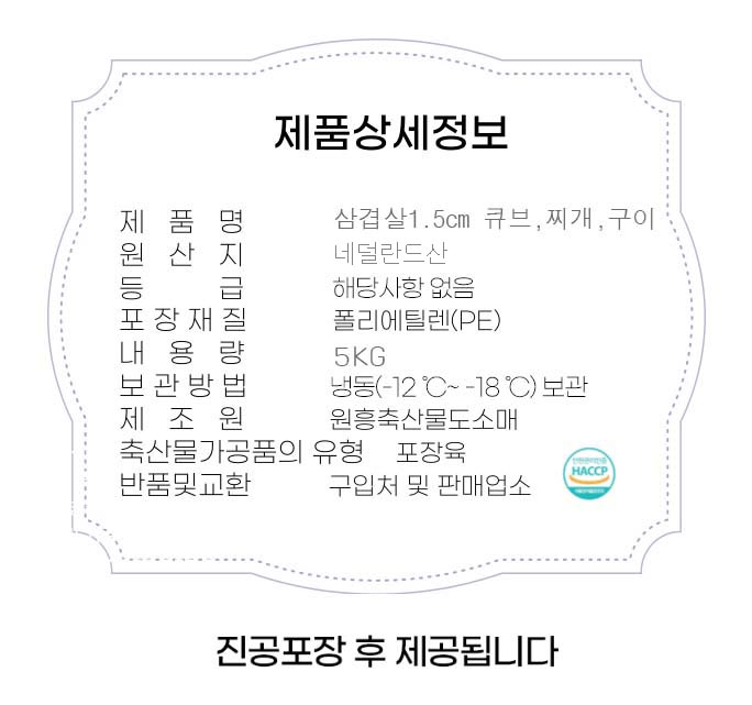 ![[직배송] 네덜란드산 냉동 삼겹살 큐브 1.5cm 5kg(찌개용,구이용) 이미지](https://content.foodspring.co.kr/vendor/3172/images/15_0761925343_r.jpg?f=webp&s=876x876&t=inside)