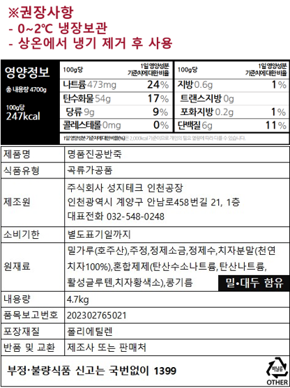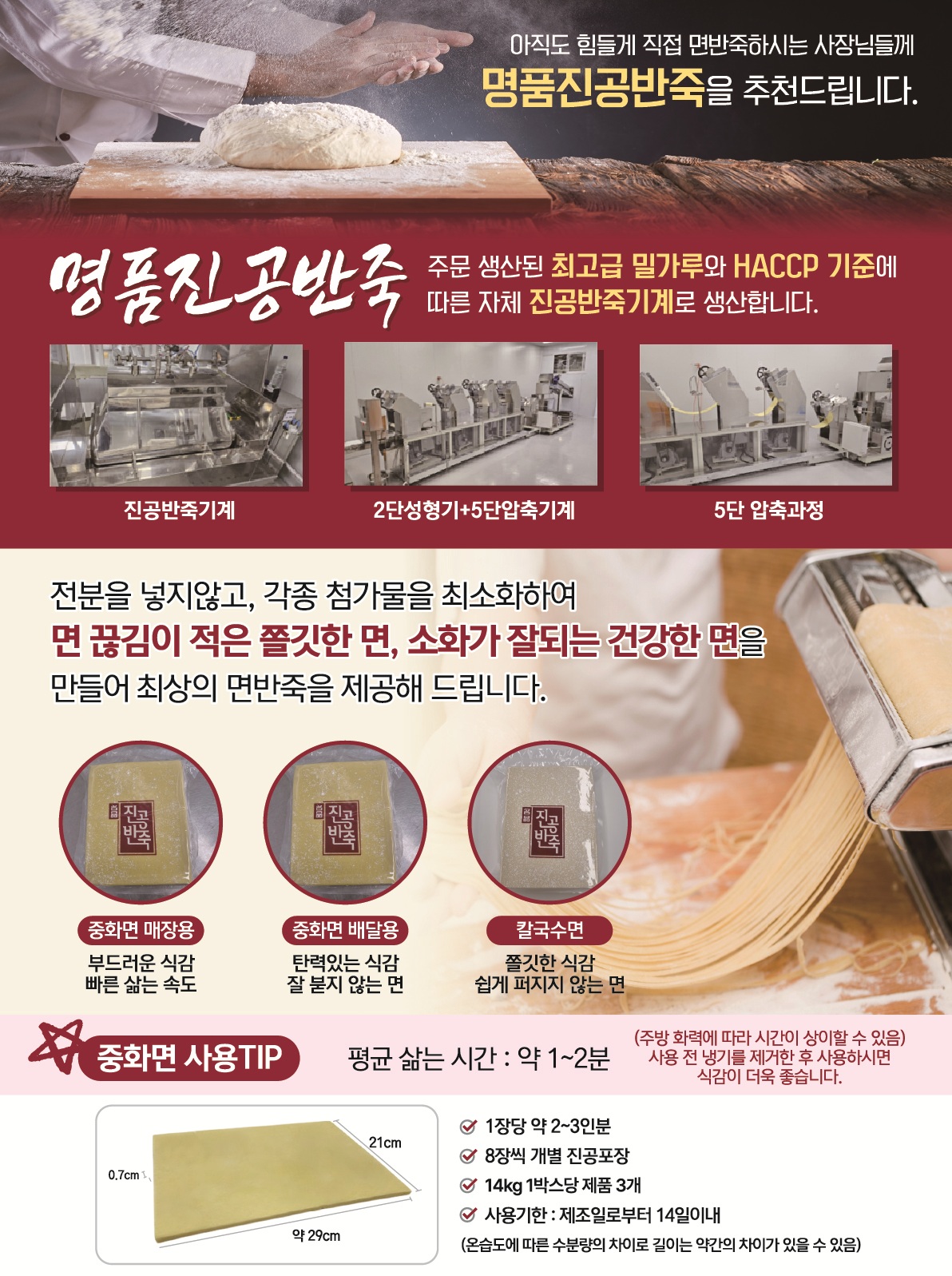 ★초특가★ [배달용] 명품 진공 면반죽 70인분 면대 중화면 14kg{4.7kg*3팩(587g*8장/팩)} 반죽 밀가루