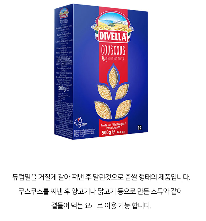 디벨라 쿠스쿠스 꾸스꾸스 500g 스튜에곁들여먹는 찐듀럼밀을 갈아낸좁쌀 이미지