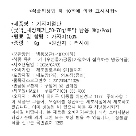 가자미(굿픽_내장제거_50~70g/토막 3Kg/BOX)