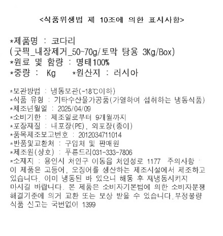 코다리(굿픽_내장제거_50~70g/토막 3Kg/BOX)