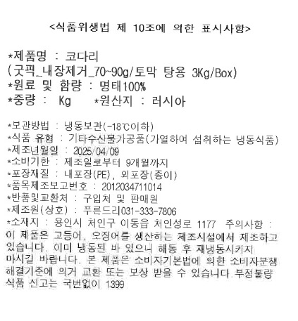 코다리(굿픽_내장제거_70~90g/토막 3Kg/BOX)