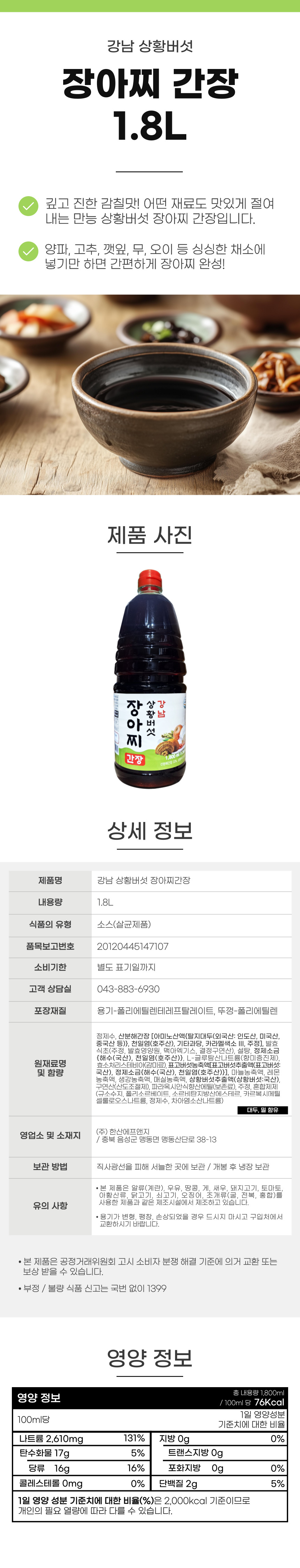 강남 장아찌 간장 1.8L 절임간장 짱아찌 만능간장