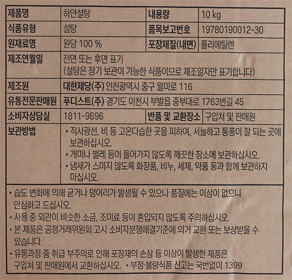 식자재왕 정백 하얀설탕10kg 이미지