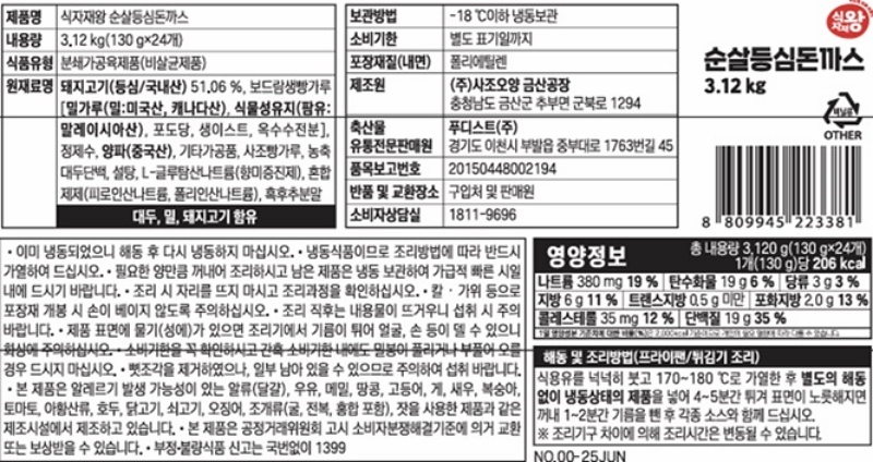 식자재왕 순살등심돈까스 3.12kg