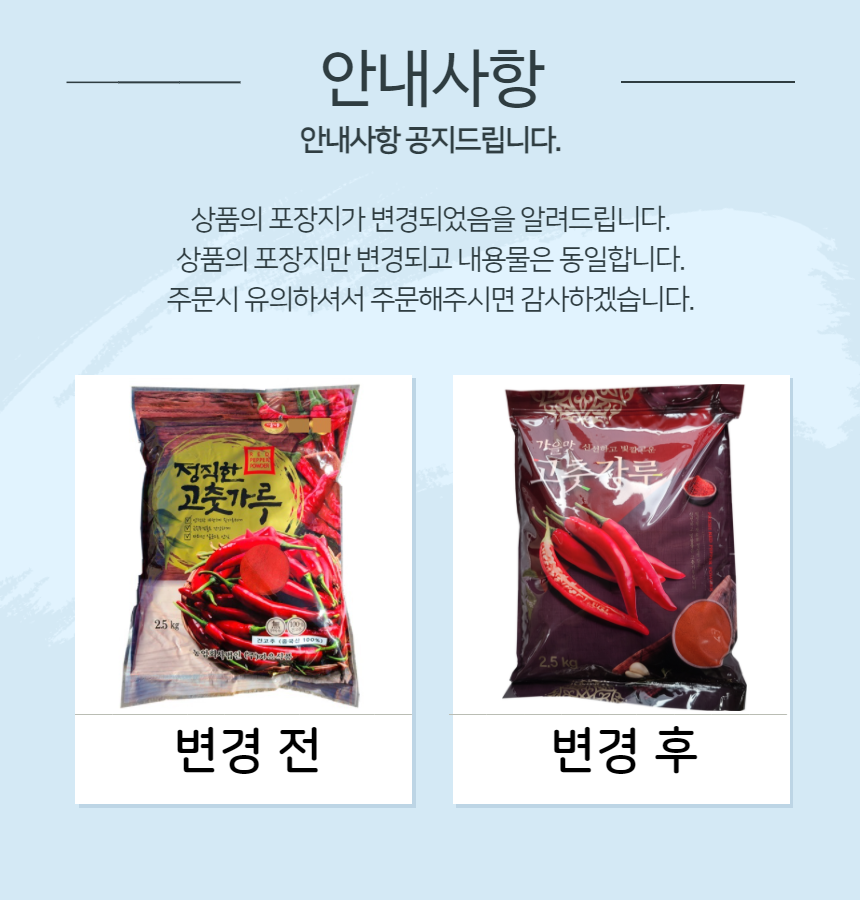 해드림 고추가루 테스트후 바로 해드림 고추가루로 바꾸기로 하였습니다.