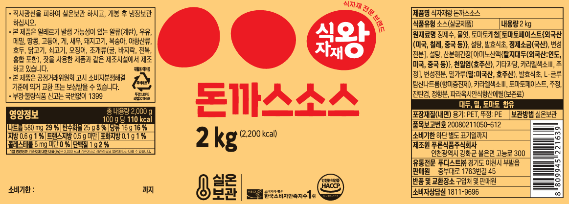 식자재왕 돈까스소스 실속2kg