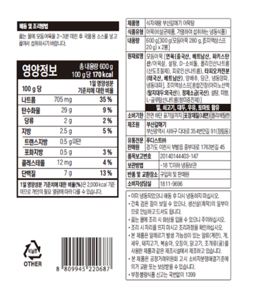 식자재왕 모듬어묵탕600g