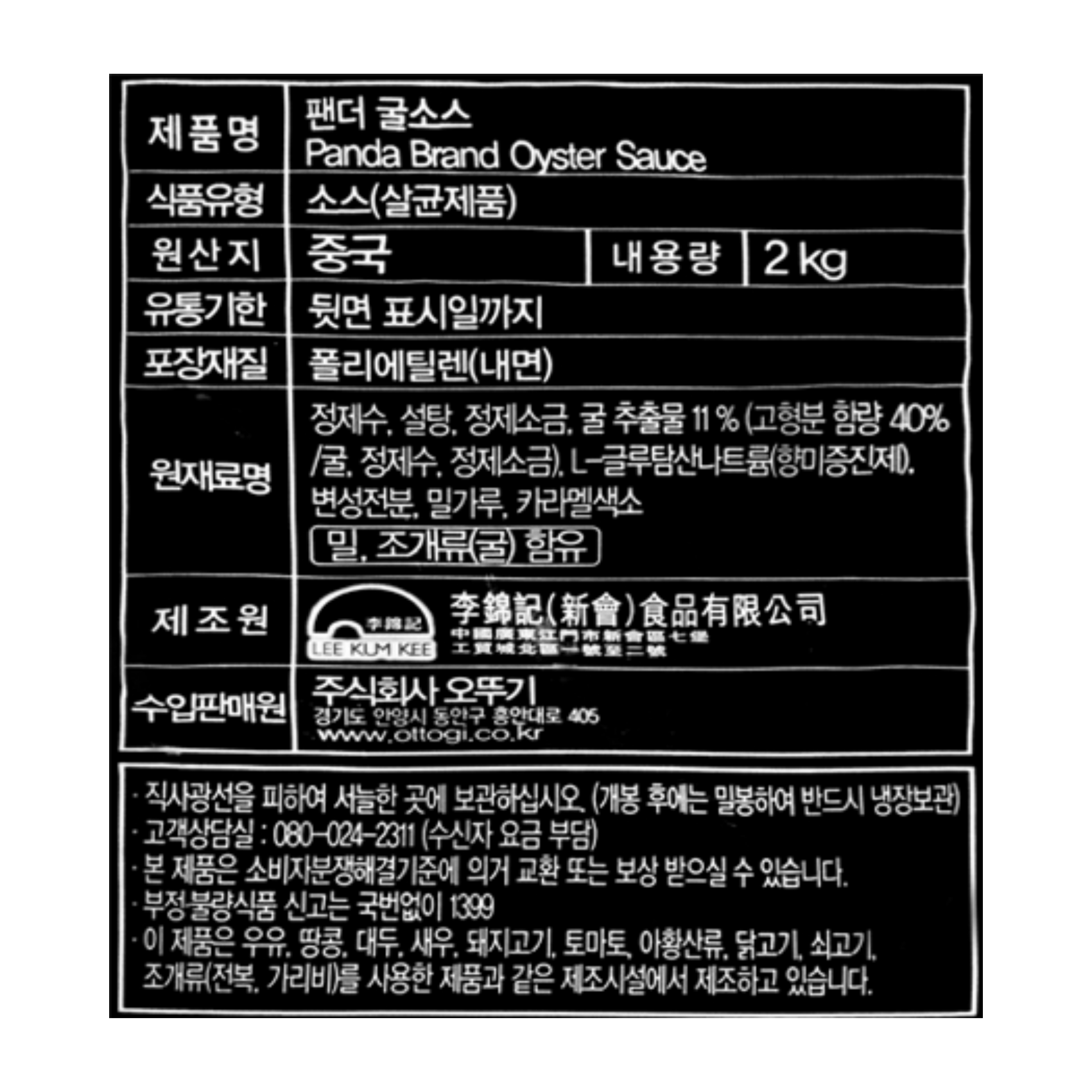 이금기 팬더 굴소스 2kg 스파우트