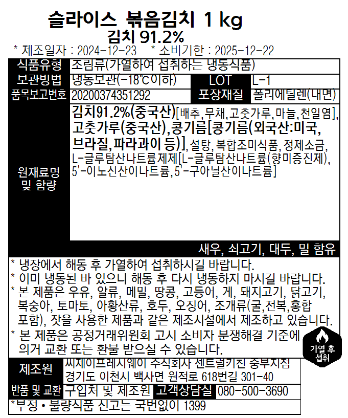 ★간편조리★ 슬라이스볶음김치(1Kg/EA)