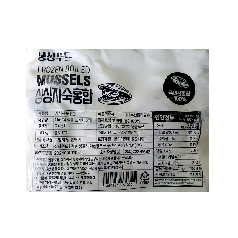 ♥수산특가♥ 피홍합 1kg ( 자숙 홍합 중식 짬뽕 안주 )