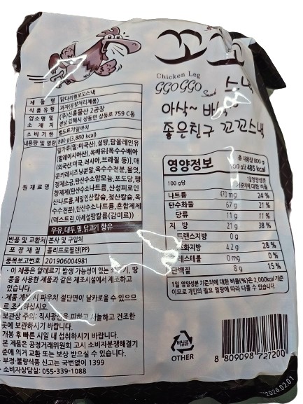 ★초특가★ 꼬꼬스낵 닭다리형 800g 대용량 안주 기본안주 닭다리 과자 이미지