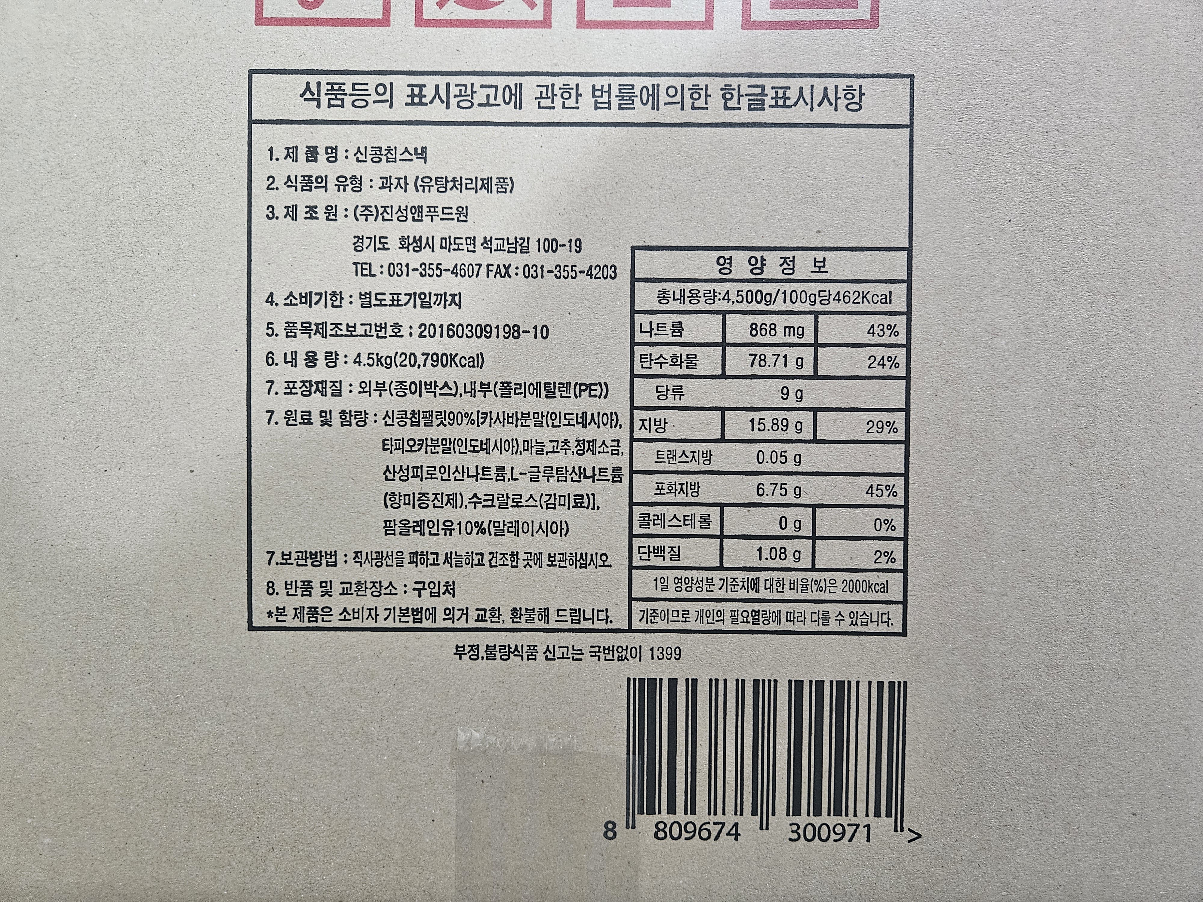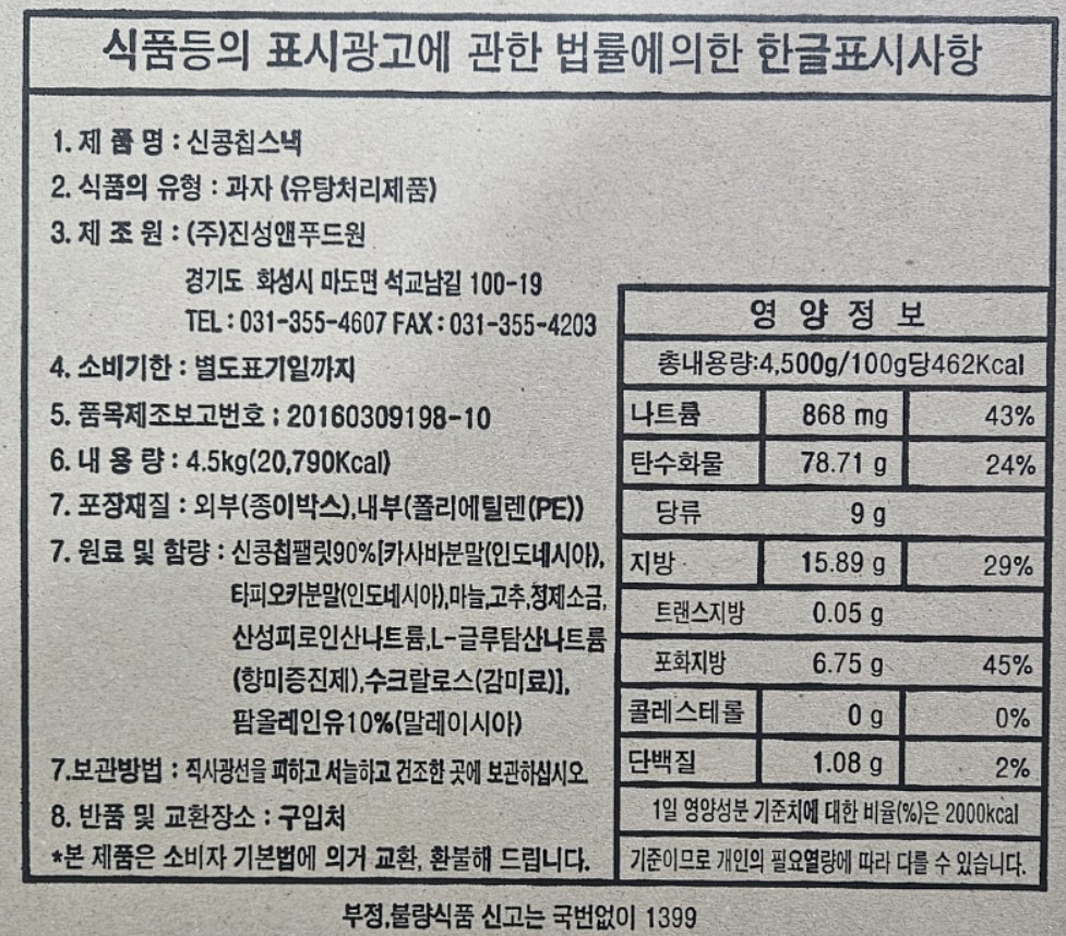 ★초특가★ 신콩칩 스낵 4.5Kg 대용량 안주 카사바칩 기본안주