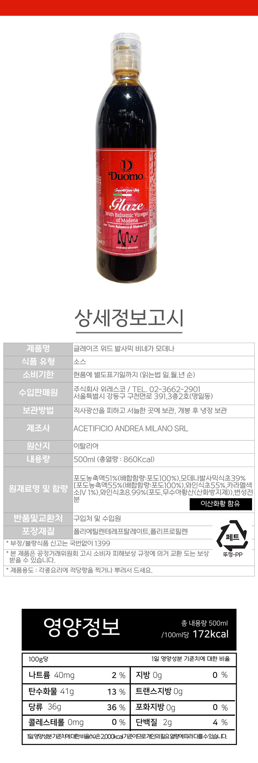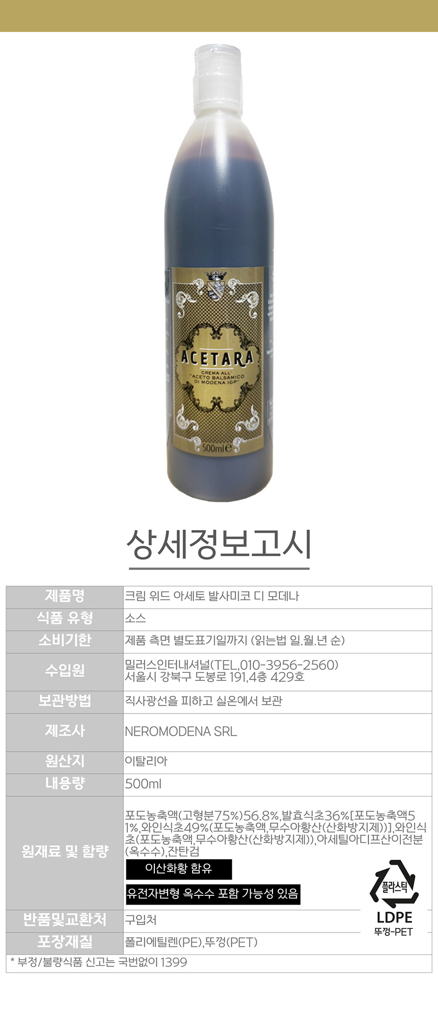 [교차출고] 모데나 발사믹 크림 500ml 드레싱 소스 글레이즈 이미지