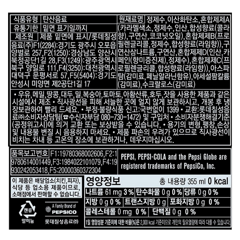 펩시 제로콜라캔(355mL*24입) 8.52L [BOX] 이미지