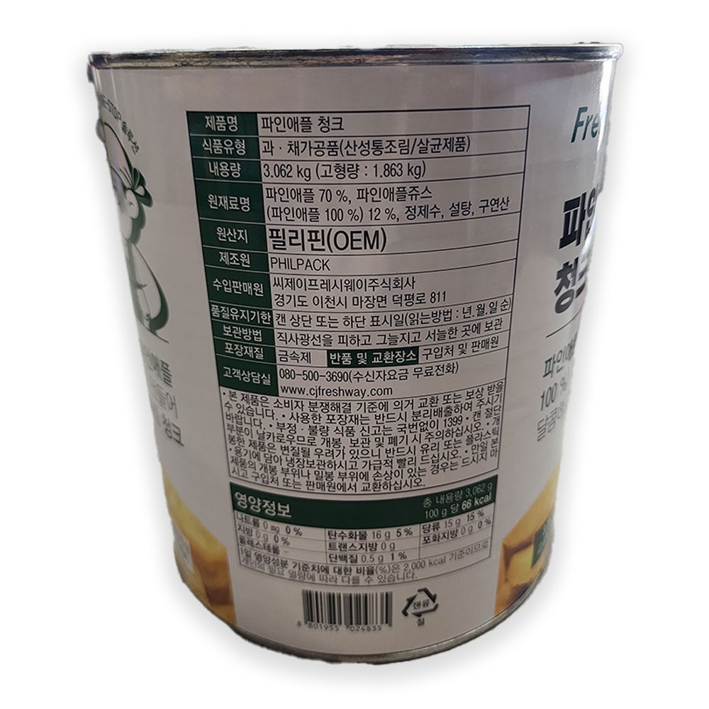 프레시원 파인애플캔(프리미엄 청크) 3.062kg