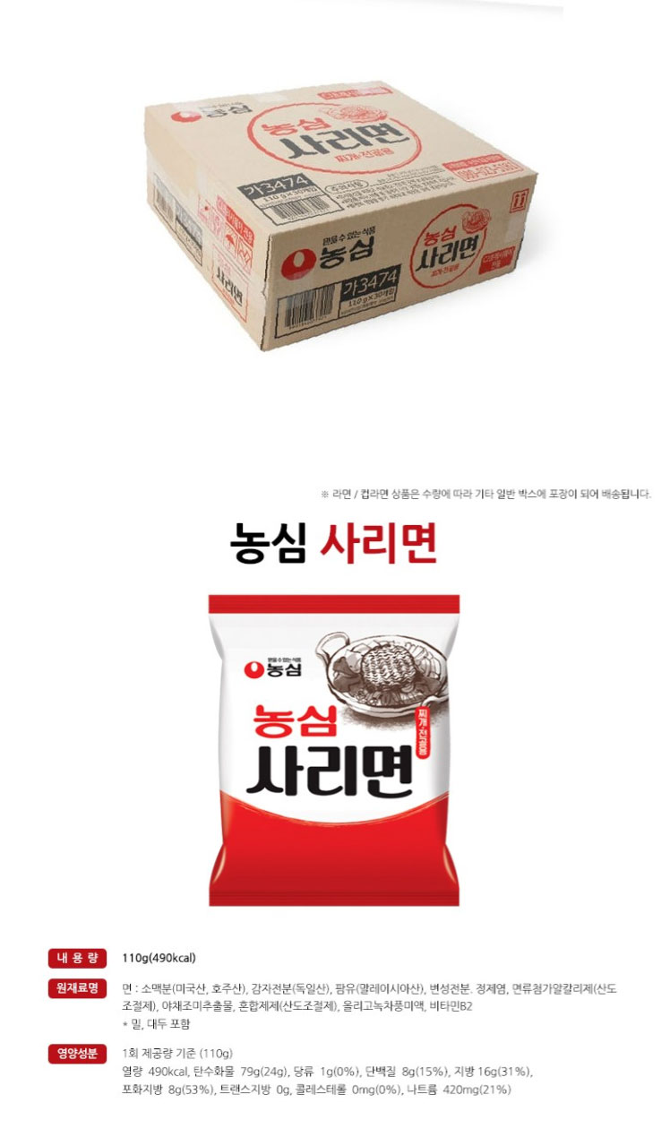 간단설명 : 라볶이나 탕 등에 사용되는 농심 라면사리입니다.